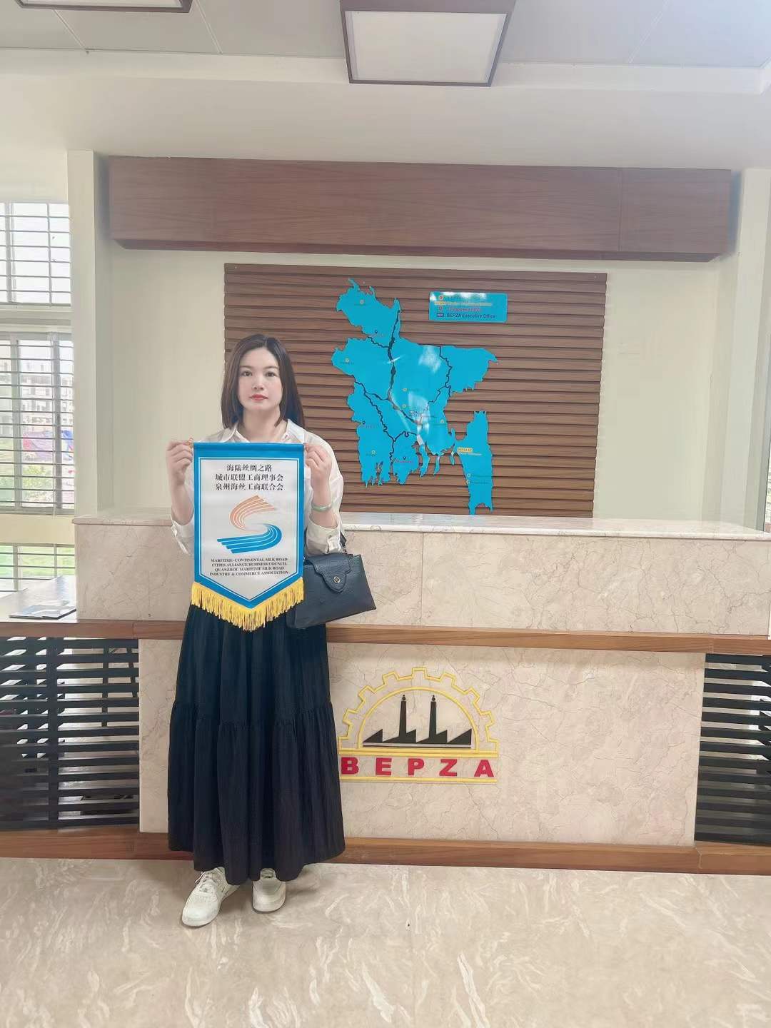 抵达孟加拉国后,唐洪总经理马不停蹄投入考察行程。在孟加拉国出口加工区管理局BEPZA执行办公室,她认真聆听工作人员介绍当地出口加工区的优惠政策、产业布局及招商重点,不时就纺织企业入驻的税收减免、通关效率等问题与对方深入交流,为企业未来可能的海外布局收集关键信息。